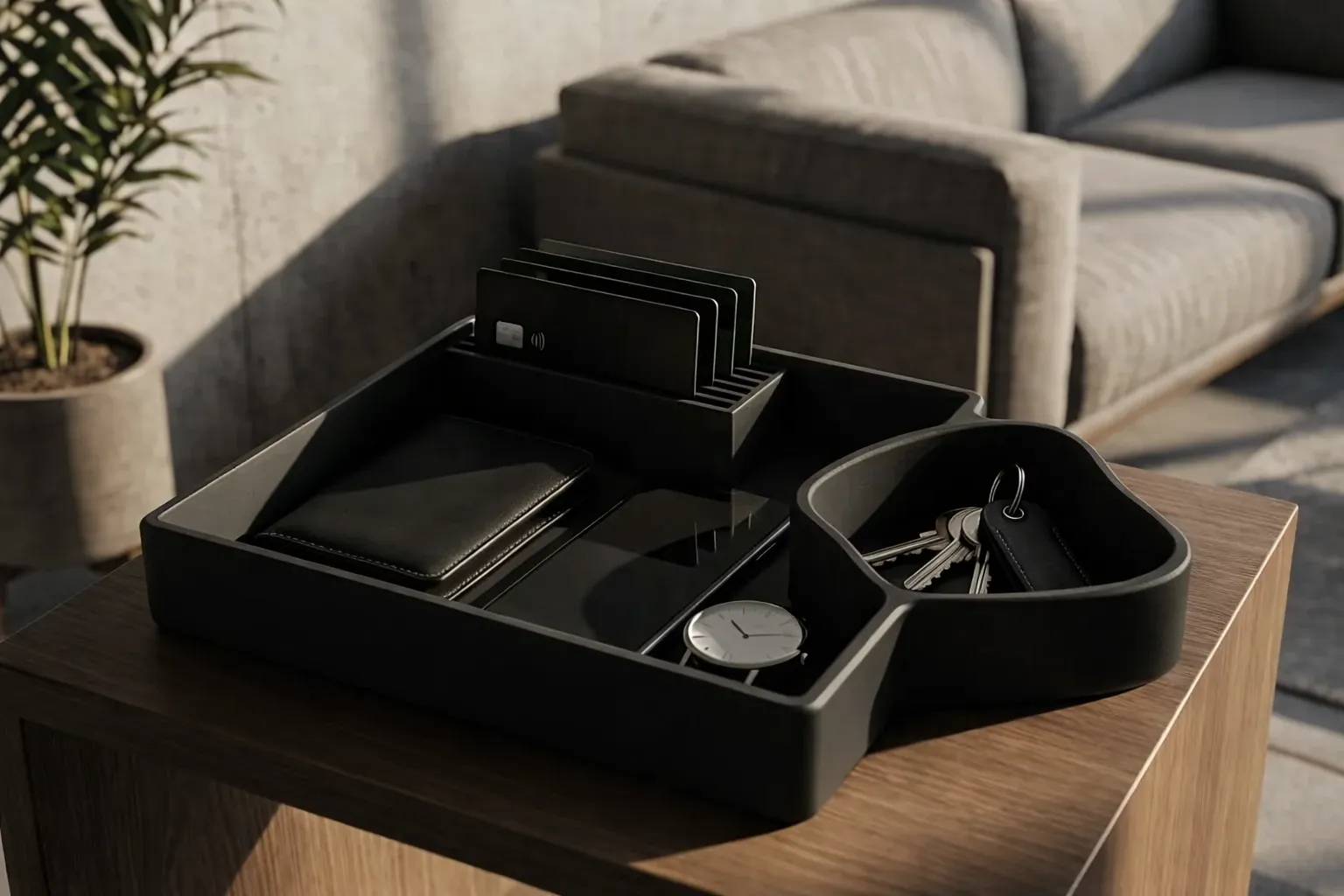 Moderne organizer tray zwart – sleutels, telefoon en accessoires